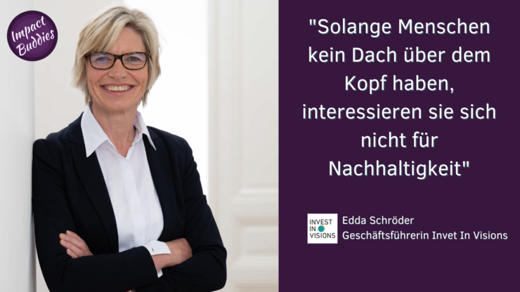Edda Schröder ist Inhaberin und Geschäftsführerin von Invest in Visions. Einer Fondsgesellschaft, die es sich zur Aufgabe macht, Menschen in Schwellenländern mit Mikrokrediten zu versorgen. Armut zu bekämpfen und ökonomischen Fortschritt zu unterstützen steht dabei im Fokus.